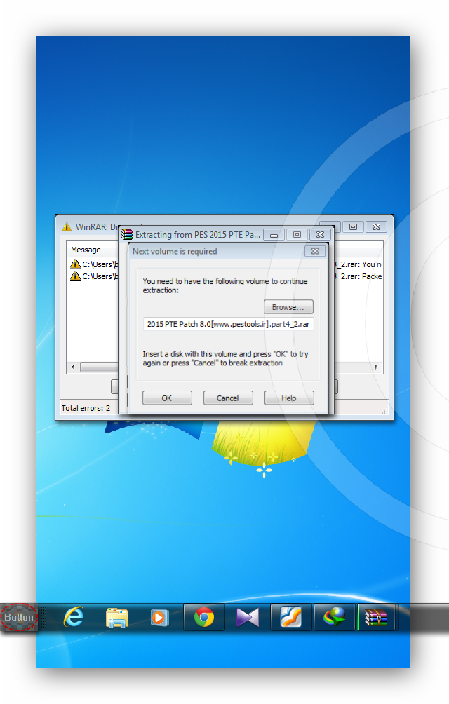 113. ارورش اینه:you have to have following volume to continue extractionبعدش یه browserمیادوزیرش مینویسهinsert adisk with this volume and press ok to try again or press cancel to break extraction